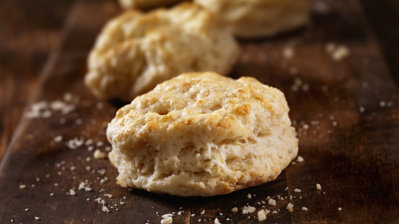 You obviously won't have to make biscuits from scratch with this breakfast idea, but there are some tricks for reheating them so you aren't stuck with dry or hard bread. The best way to reheat the leftover buttery bread so it seems fresh out of the oven is to wrap them in foil and heat them at 350 F for around 10 minutes. If you're really in a rush, reheat the biscuits in a microwave in less than a minute — but wrap them in a damp paper towel first so they don't dry out.