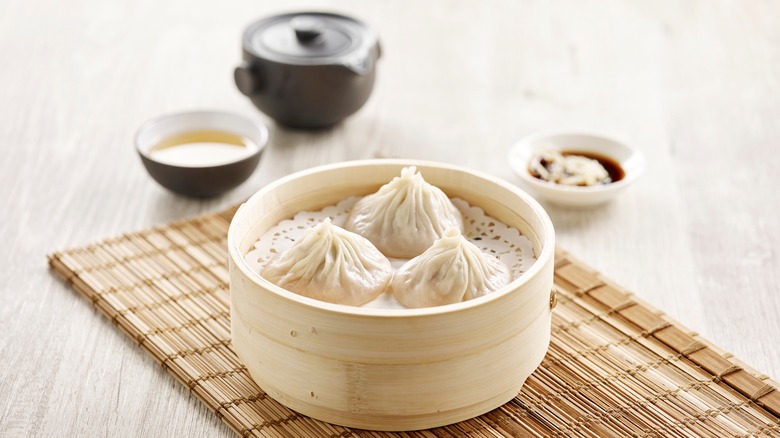 However, there are a few other reasons you want to ensure your homemade dumplings are dished out quickly. For instance, the simple fact that they will eventually lose their juice to the wrapper or evaporation. Either way, the most soupy bites are to be had at the beginning of a soup dumpling's life. After that, it's all a race against time — and the broth running dry.