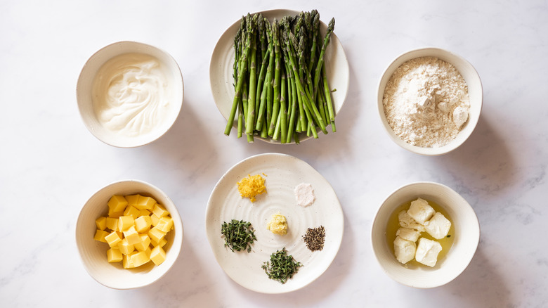 Gather the ingredients for this creamy, lemony asparagus galette