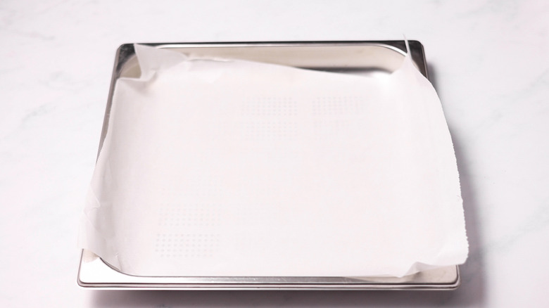 - Line a baking tray with parchment paper.