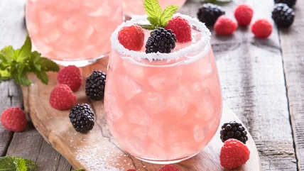 Whiskey and bourbon tote rich, bold flavors that are delicious on their own, but compete with the strong flavorful fruit rather than complement it. More neutral spirits like vodka and gin let the fruity flavor shine. For a simple yet sophisticated sipper, pop a few frozen raspberries into a Cosmopolitan or a French 75. Frozen cranberries or blackberries would work well in a Moscow Mule or a glass of chilled mulled wine. Likewise, you could try adding frozen pitted cherries to a Sangria or Sloe Gin Fizz or putting frozen blueberries in a Tom Collins.