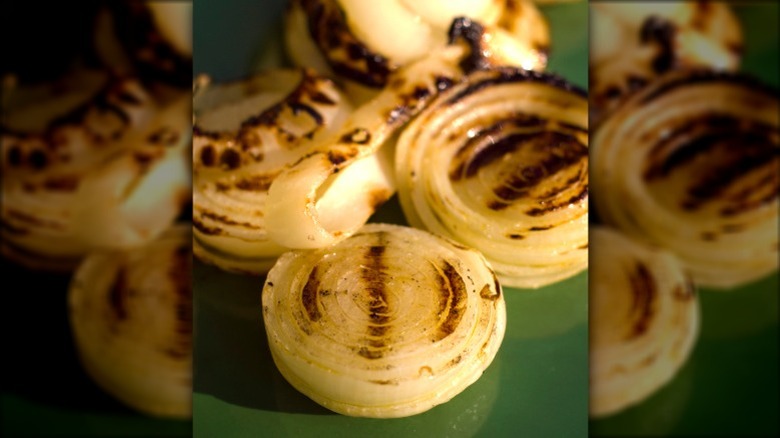 Love grilled onions but hate the mess they make on your backyard grill? Grilling slices of onion for your burgers or other protein of choice doesn't come without its hazards. They tend to fall apart and slip right through those grates. If you know, you know — but it doesn't have to be that way. Martha Stewart has a trick that will simply require thick slices and a properly soaked skewer to ensure your onions never fall apart when you throw them on the grill.
