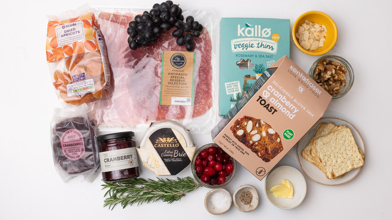 Gather the ingredients for this cranberry and rosemary baked Brie board