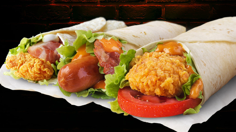 You might occasionally have a craving for those tasty, bite-sized McDonald's Snack Wraps filled with chicken tenders, but, unfortunately, they were taken off the menu here in the U.S. back in 2016. In fact, you'll have to go to Wendy's to order a comparable chicken wrap. But over in South Korea, Snack Wraps are still on the menu — and they have a version that swaps the usual chicken tender for a hot dog-style sausage.