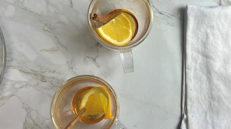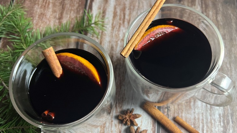 Developer Julianne De Witt makes her mulled wine in a classic style and calls the drink "festive, cozy, [and] delicious." She also points out that it's easy to make, taking no more than 10 minutes to prepare and an additional half hour to mull. As mulled wine can be prepared with so little effort, De Witt feels that it is "perfect for entertaining." Even if you're not planning to fête a houseful of wandering wassailers, you can make it for yourself and warm a mugful in the microwave whenever you'd like a cup of cozy cheer.