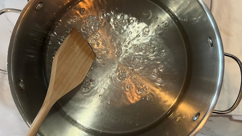 - Add water and sugar to a large pot over medium-low heat. Stir.
