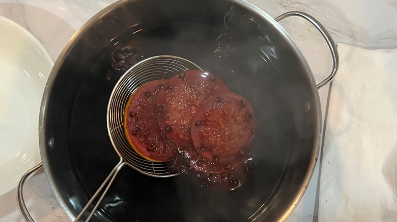 Step 8: Remove the oranges and spices