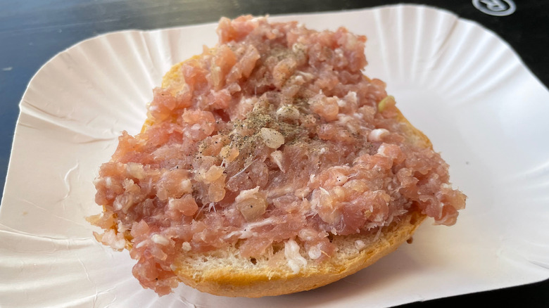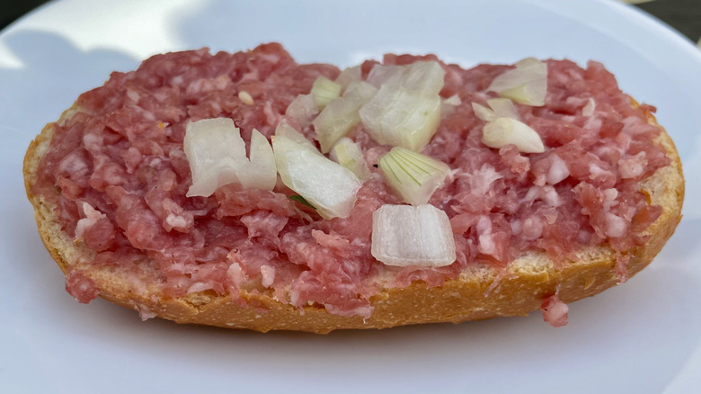 That said, all raw foods present some risk for food-borne illness, including fruits and vegetables, per the CDC. If you enjoy medium-rare burgers, runny sunny-side up eggs, or steak tartare, you're ignoring the advice of American food safety authorities for the sake of delicious experiences. Granted, U.S. food safety laws are a bit random — the government bans some foods, like lung meat and raw dairy, that are popular in many other countries. Conversely, while the USDA may frown on the consumption of raw meat, it's not illegal. Ultimately, the decision about whether mett is worth the risk is up to you, although it might be best to eat it in Germany, where traditional food-handling practices make it as safe as possible.