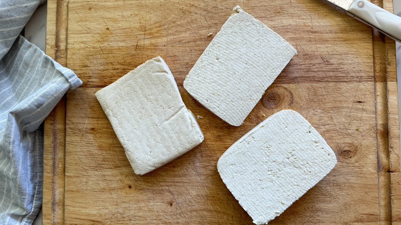 Slice the tofu into 3 thick slices.