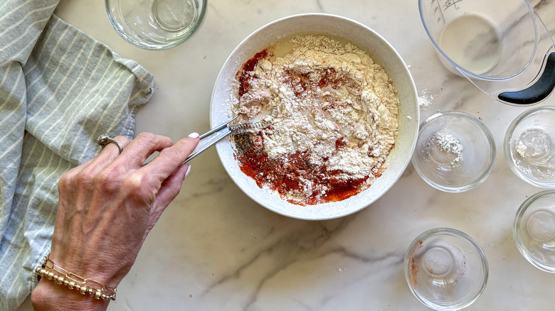 - In a shallow bowl combine the soy milk, flour, cornstarch, paprika, salt, and pepper.