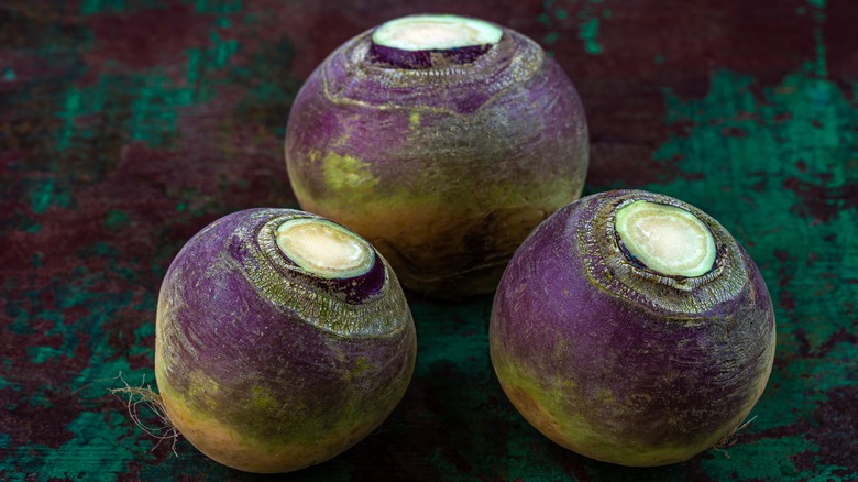 There's no question that mashed potatoes are one of the ultimate comfort dishes. They're warm, buttery, and taste great when served plain and simple or when they're decked out with indulgent toppings. When it comes to their flavor profile, mashed potatoes are a blank canvas. A potato's mild, starchy flavor gives way to a vast array of recipes and ingredients, which is great — when that's what you're going for. But if you're ever feeling like your mashed potatoes are just missing something, you might be someone who would appreciate the deep, bold flavors of rutabaga.