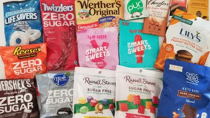 The next category is sugar alcohol. These are gaining popularity in the candy market. These include erythritol, maltitol, and xylitol. Some people complain these cause gastrointestinal discomfort, like bloating, gas, or diarrhea. The final replacement category for sugar is novel sweeteners. These are usually derived from plants and include allulose, monk fruit, and stevia. For this ranking, we considered the types of sweeteners used, as well as how well the flavors of these sugar free candies mimic the classics.
