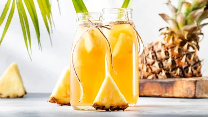 Pineapple cores are too fibrous and tough to chew and eat, but they still have a lot of flavor and nutrients that they can impart to your water. After you pop a chilly core into your bottled water, you will be able to taste the sweet and distinctive flavors of the pineapple within 15 minutes to a half hour. Keep the bottles in the fridge and they will be ready to sip on whenever the thirst bug bites.