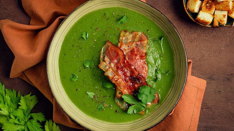 Chopped Bacon Lends A Salty Punch To Mild Cream Of Celery Soup
