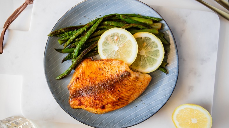 Blackening is the perfect way to achieve a spicy upgrade. It's a traditional Cajun technique that involves rubbing fish or chicken with butter, and flavoring it with an assortment of seasonings. Coated in an abundance of herbs and spices, your next meal of mild tilapia will prove itself to have more depth than we usually give it credit for. To get the color, it takes more than just salt and pepper; employ paprika, brown sugar, thyme, onion powder, dried oregano, or a homemade Cajun spice mix.