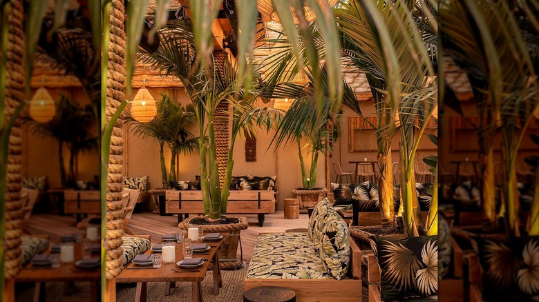 The party starts at around 10 p.m., with a general admission ticket costing $24 — in honor of 2024, of course. However, if you want to secure seating along with a group of friends, it's perhaps best you book a table, as general admission tickets only guarantee standing room. Once you're in, enjoy the warm, fun ambiance, with palm tree leaves splashed absolutely everywhere on the furniture, as well as actual palm trees situated within the building, tropical cocktails, punchbowls, a live DJ, and a complimentary champagne toast.
