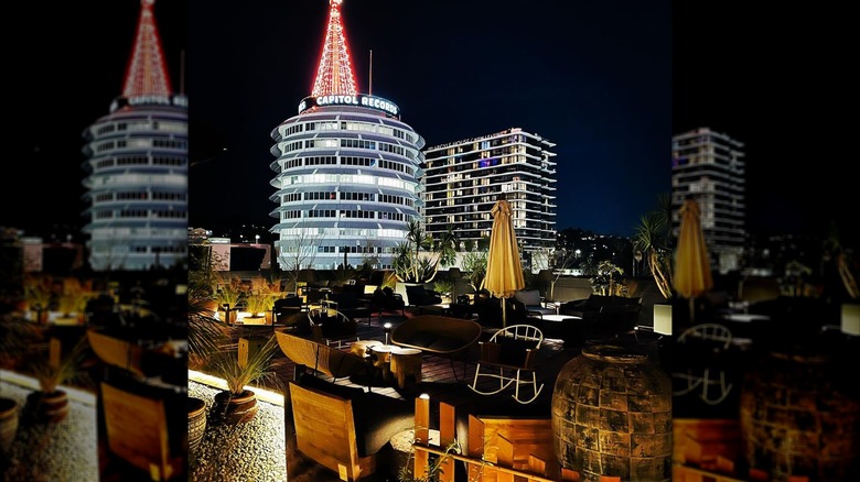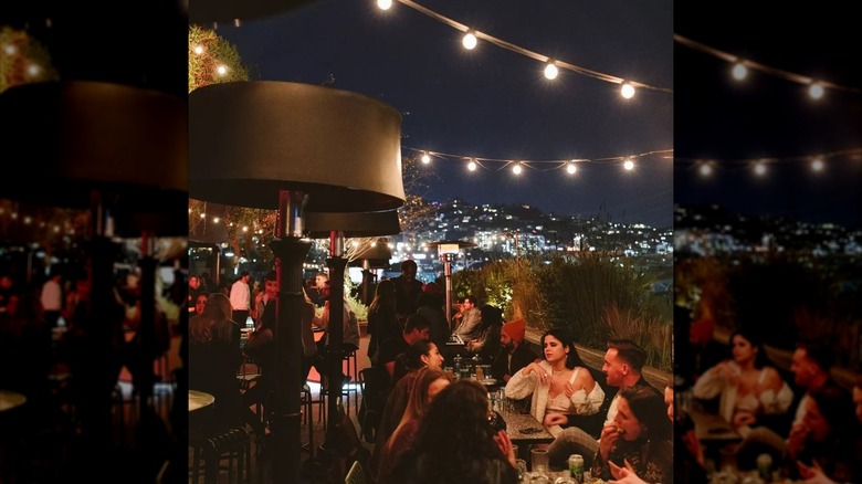 Head up to the top floor of the Thompson Hollywood Hotel to ring in 2024 with a five-hour open bar, included in the general admission ticket for $173. If you're willing to splurge upwards of $2,000 as a group, you can also book an entire table for anywhere between six to twelve people (or even fifteen-plus people if you really want to spend the extra money). There is a large indoor area roughly divided into two rooms, one featuring the wide, elegant bar and the other decorated with tables and a piano, as well as an outdoor patio you can explore.