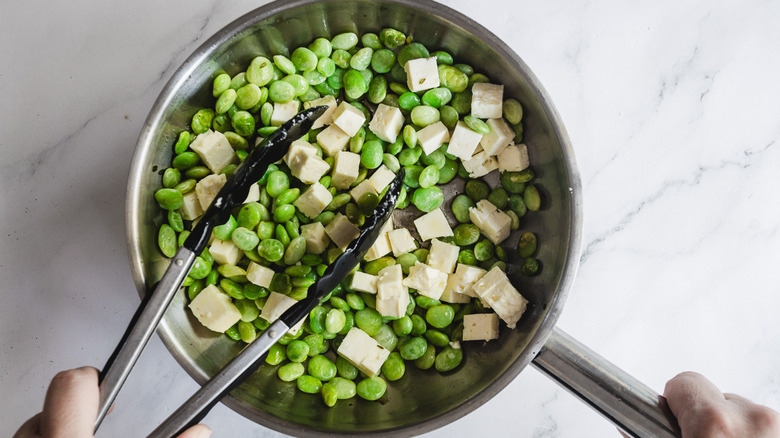 One addition that has the capability of bringing out the lima bean's creamy texture even further is, surprisingly, feta cheese. Recipe developer Ksenia Prints contends that pan-frying lima beans in a lemon and garlic-infused olive oil mixture, followed by stirring in cubes of feta, creates a zesty, fresh balance of ingredients that play off of each other beautifully. In Prints' recipe for pan-fried lima beans with feta and lemon zest, she demonstrates just how well the brightness of lemon, the salty tanginess of feta, and the nuttiness of lima beans can elevate each other's flavors to the next level.