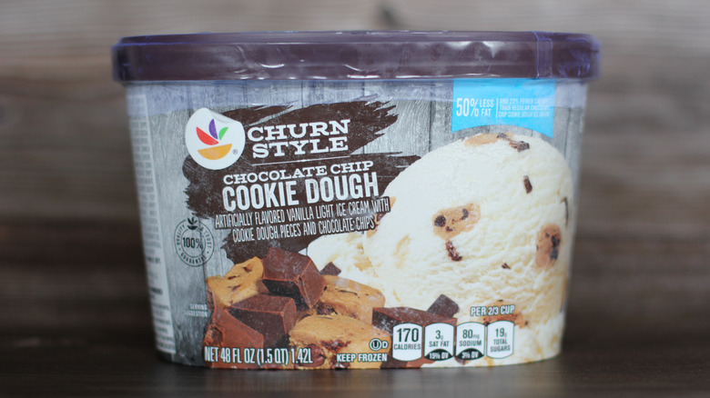 Our local Stop & Shop was the source of all of these samples, so we had to pick up a 1.5-quart of the cookie dough ice cream to try, too. This generic brand was the most budget-friendly of all of our ice creams, at $3.57 for a 1.5-quart container. Its base tasted cheap and airy and didn't splinter when it was scooped. There wasn't a prominent vanilla note here or there, either. We couldn't identify any particular flavor notes here, which was disappointing, but on par with our experiences with store-bought frozen desserts.