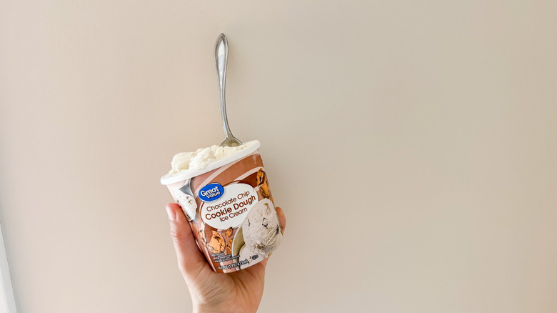 We hate to say it, but Great Value is probably not the brand you're going to be selecting if you're after high-quality ice cream. It's a reliable store-bought option, sure, but it's not known for reinventing the wheel in terms of the flavors it offers or ingredients it uses — and this ice cream is evidence of that. We ate it at the same time as the Häagen-Dazs, and it was clear which one was pumped full of air and which one had a significantly higher butterfat content and more well-rounded flavors.