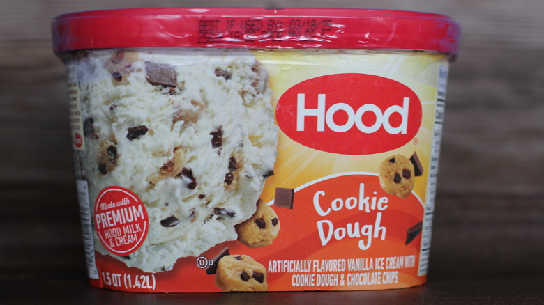 If we're getting Hood ice cream, plain cookie dough will probably not be the top product on our list. While yes, it is good ice cream from a reputable brand, there are just more exciting flavors out there that we would rather enjoy. Nonetheless, we still stuck our spoons into this iconic New England brand's selection.