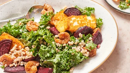 Although cheeses like Gruyère and Camembert are renowned for their gourmet qualities, halloumi is a lesser-known star of the dairy category. Yet, in several ways, it stands apart from the rest. Not only does it hold its shape when cooked, but it can work as a meat substitute. Made primarily of sheep and goat's milk, the high-protein cheese has a rich, umami taste that can stand in place of (or beside) meat and seafood in all your hearty winter salads. Halloumi can be eaten raw, but it's when cooked, particularly in recipe developer Michelle McGlinn's shrimp and beet winter salad with seared halloumi, it tastes so much better.