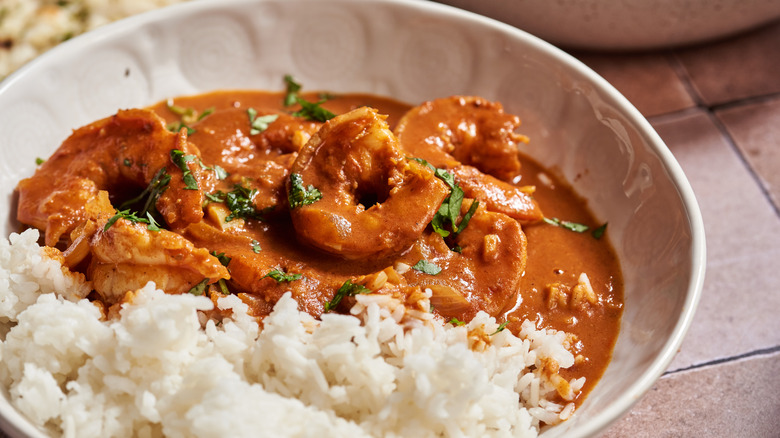 Even if you don't like Indian food, you've probably heard of chicken tikka masala. As one of the most popular dishes on restaurant menus, it's long been a staple in Indian cuisine despite actually being a British-originated dish. Similar to Indian butter chicken, tikka masala is spiced chicken simmered in a creamy tomato gravy. What makes both dishes so popular is the flavorful tomato sauce, which is typically soaked into naan and eaten with spoonfuls of rice. Tikka masala started as a chicken-based dish, but the main protein can easily be swapped for paneer, eggplant, or even tofu. In this recipe written by developer Michelle McGlinn, tikka masala gets an upgrade by using juicy, flavorful spiced shrimp. It has all the flavor you know and love in your favorite Indian takeout but with a pescatarian twist. This recipe is perfect for when you want a little something different. Because it comes together in less than 30 minutes, it's especially perfect for when you want a meal fast.