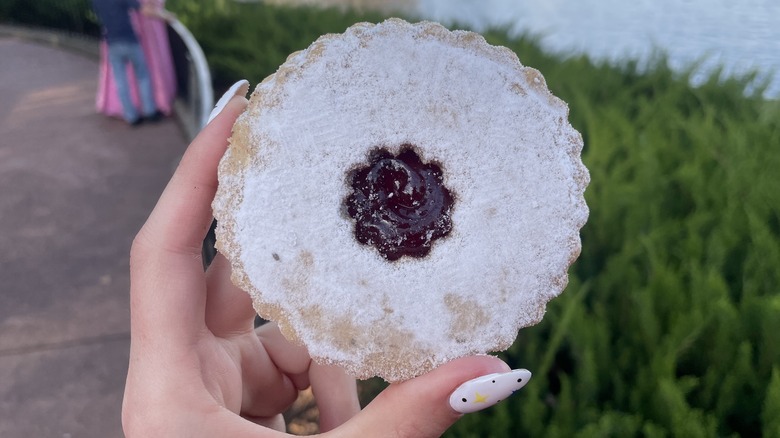 For many, there's nothing quite like a luscious Linzer cookie, especially around the holidays. At Epcot's Bavaria Holiday Kitchen, tucked inside the park's Germany Pavilion, you can treat yourself to a beautiful interpretation of this scrumptious sandwich cookie — and earn a Cookie Stroll stamp, to boot.