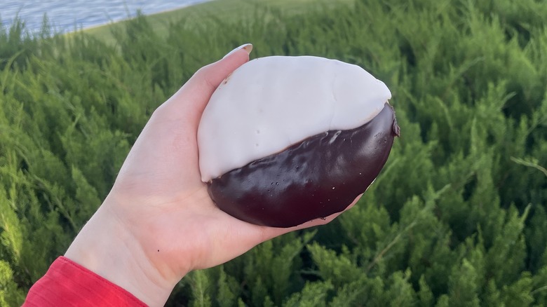 As soon as we sank our teeth into L'Chaim! Holiday Kitchen's Black and White Cookie, we knew we'd found our Cookie Stroll winner. As New Yorkers, we've tasted plenty of these half-and-half confections in our lifetime, and we can confidently say that L'Chaim!'s version was one of the finest we've ever had. We also learned that there's more than meets the eye to L'Chaim!'s classic treat — it's also the only plant-based selection on the 2023 Cookie Stroll a Disney.