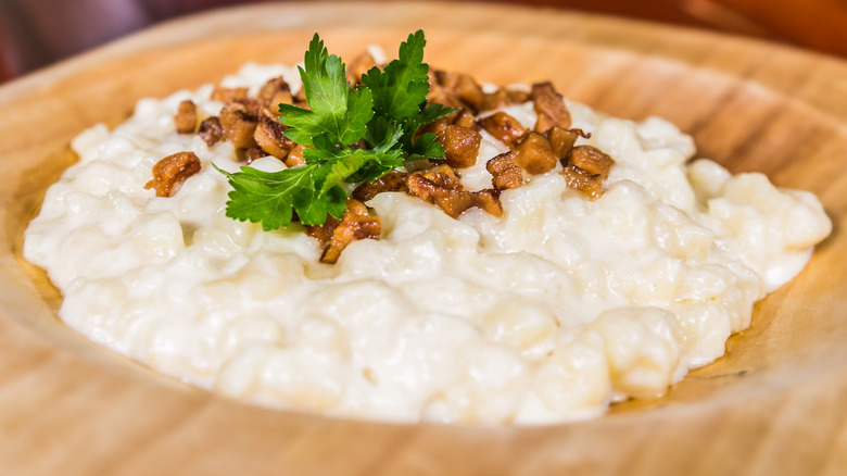 Also called shlishkes, these breaded potato dumplings have their origins in Hungarian-Jewish cuisine. We're featuring the Hungarian version here, but similar variations of these gnocchi-like dumplings can be found across Eastern Europe. In Poland, they are referred to as kopytka and are typically served with bacon and onions. Meanwhile, the Czechs call them bramborove knedliky ze studenych brambor and enjoy them alongside cabbage and roast beef.