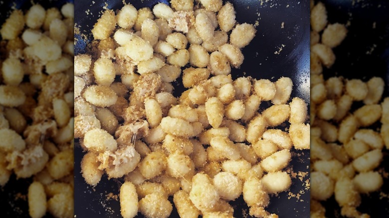 Shlishkes may resemble other potato dumplings, but their unassuming appearance conceals a unique preparation method. Instead of the conventional methods of mashing or grating, these dumplings involve ricing still-warm potatoes. Ricing the potatoes while they're warm ensures that the final product is exceptionally light and fluffy. The next step is to combine the riced potatoes with beaten egg, salt, and flour to create a dough. This dough is then rolled out and sliced into ¾-inch pieces before taking a plunge into boiling water. Once cooked, the dumplings are pan-fried in a mixture of butter and breadcrumbs until thoroughly coated.