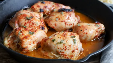 Originating in Tunisia, harissa made its way throughout the rest of the region to become a staple of several Middle Eastern and North African (MENA) cuisines. It is a paste made from red peppers, tomato paste, garlic, and olive oil that gives your chicken a kick without overwhelming the palate. The heat in harissa has more of an enveloping warmth rather than a spicy bite, thanks to spices like cumin, caraway, and coriander that provide baked chicken with depth.