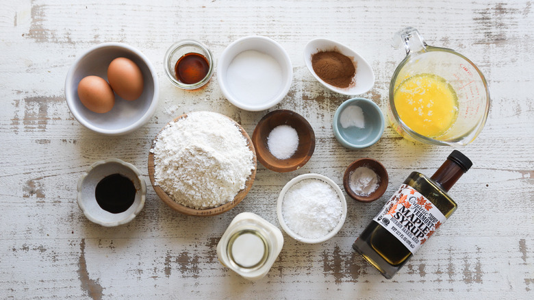Gather the ingredients for cinnamon bun Christmas pancakes