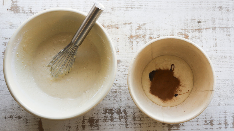 - Remove ¾ cup of batter to a separate bowl and whisk in cinnamon and molasses.