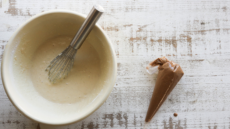 - Transfer the cinnamon batter to a squeeze bottle or a pastry bag.