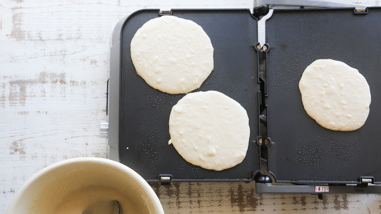 Step 9: Add pancakes to the griddle