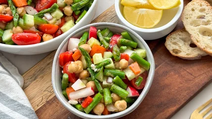 Wellness coach and recipe developer Miriam Hahn brings us this recipe for chopped asparagus salad and says, "This delicious salad screams fresh and can be a light dinner with a bowl of soup or a satisfying side dish. It only takes 10 minutes to make and you can make a new version of it every week with various produce items that you have in your fridge." We have a feeling that this colorful asparagus salad just might become a dinnertime go-to in your household.