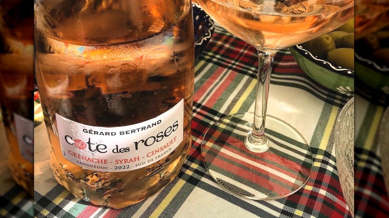Gerard Bertrand Cotes des Roses Rosé blends grenache, syrah, and cinsault from vineyards near the Mediterranean Sea. The water's influence gives the fruit-forward yet dry palate a slight salinity. With red berry, grapefruit, and wild herb flavors, the wine is a match made in heaven with seafood, like shrimp, clam, and white fish-filled French bouillabaisse. Gerard Bertand's dedication to environmentally healthy farming while providing quality wines at affordable prices, like its $12.89 at Costco rosé wine.