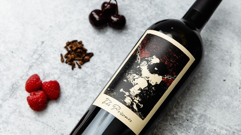 In The Prisoner Wine Company's signature red wine, The Prisoner, an unlikely combination of varieties like zinfandel, charbono, and cabernet sauvignoncreate a full-bodied wine with widespread popularity. The California appellation wine ages in a combination of partially new French and American oak. The oak program lends toasted cedar, pepper, dark chocolate, and toffee notes to the wine's blackberry pie, licorice, and ripe Mission fig flavors.