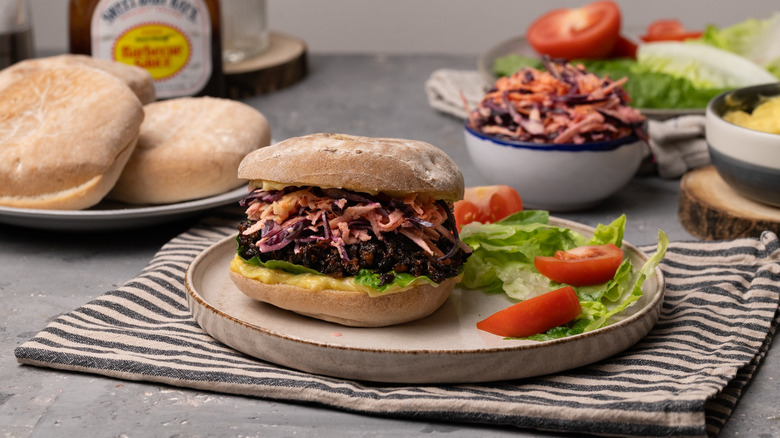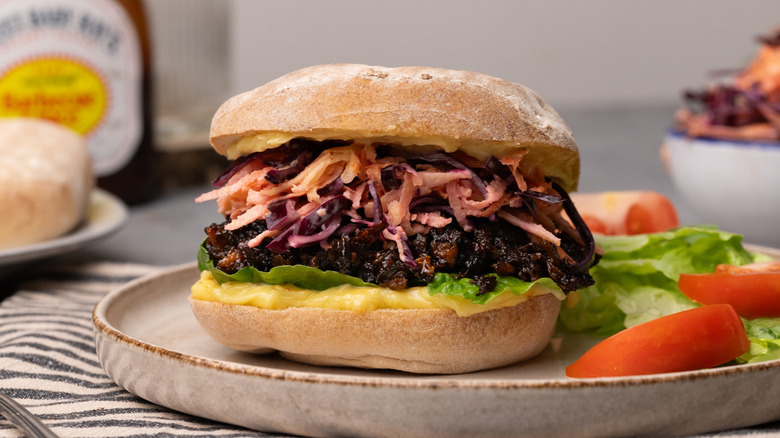 This BBQ mushroom sandwich with carrot-apple slaw and homemade aioli, created by Tasting Table recipe developer Jennine Rye, is a real flavor-fest of a dish. Portobello mushrooms are shredded before being oven-baked and mixed with a barbecue sauce, to make a rich, smoky, and saucy sandwich filling. This is paired with a fresh and crisp carrot-apple slaw to add both flavor and crunch. The sandwich is finished off with a thick, garlicky homemade aioli that can be whipped up in just a few minutes. Once you serve this sandwich, there won't be any further questions about whether vegetarian options are lacking in flavor! So whether you choose to follow a strict vegetarian diet, or simply wish to find new and exciting vegetarian recipes to cut down on your meat intake, this sandwich won't leave you wanting.