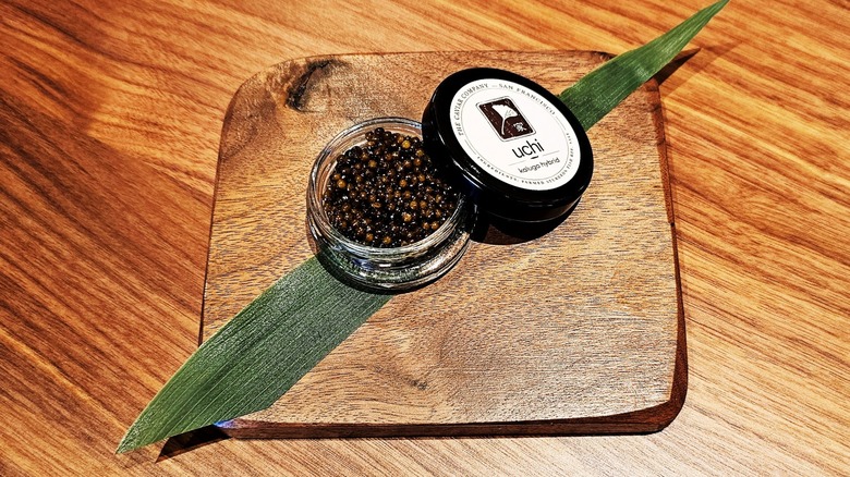 Uchi has several different kinds of caviar on its menu in Los Angeles: smoked trout, Kaluga, royal white sturgeon, and Golden Osetra. But it's the Kaluga that comes served as sushi because it's both delicious and cost-effective. "They're all very different caviars, as far cost goes and quality goes," Tyson Cole explains. "Golden Osetra is obviously the most expensive one, Cole says. "It's also the best one," the chef's smile hints at why he's "hesitant" to use that variety of caviar for the sushi.
