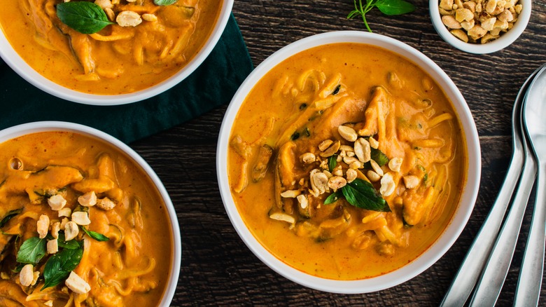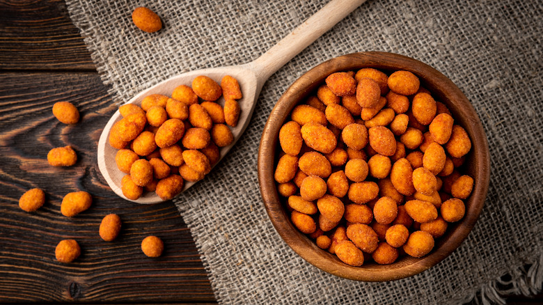 Peanuts offer a buttery, nutty savoriness that pairs well with the spiciness of the peppers in the seasoning. You can purchase jerk seasoning at any grocery store, or make your own to control the heat level. Plus, it's a lot easier and quicker to make jerk peanuts than it is to make an entire chicken dish. Instead of creating a liquid marinade, you'll sprinkle the seasoning over oiled peanuts before placing them in the oven to crisp up and absorb the flavors. Cooling them will further seal their flavors and solidify their crunch. Then you can store jerk peanuts in an airtight container in your pantry or fridge for up to a week.