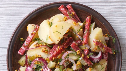 Last but not least, think about flavor. Rather than adding just any cured meat to your salad, consider how flavors will work together, and make it a point to create balance. For example, a decadently dressed potato salad might benefit from a leaner meat like savory lachsschinken, whereas a simple salad of warm potatoes tossed in vinaigrette might benefit from a rich and fatty sucuk. Some recipes might thrive from mixing in various kinds of charcuterie — although we'll leave the experimentation up to you!
