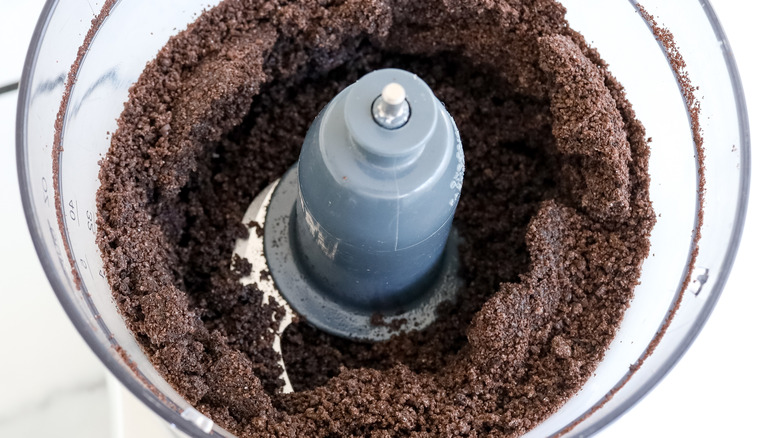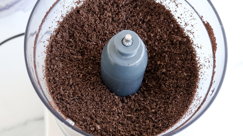 - Add the Oreos to the bowl of a food processor and pulse until they become fine crumbs.