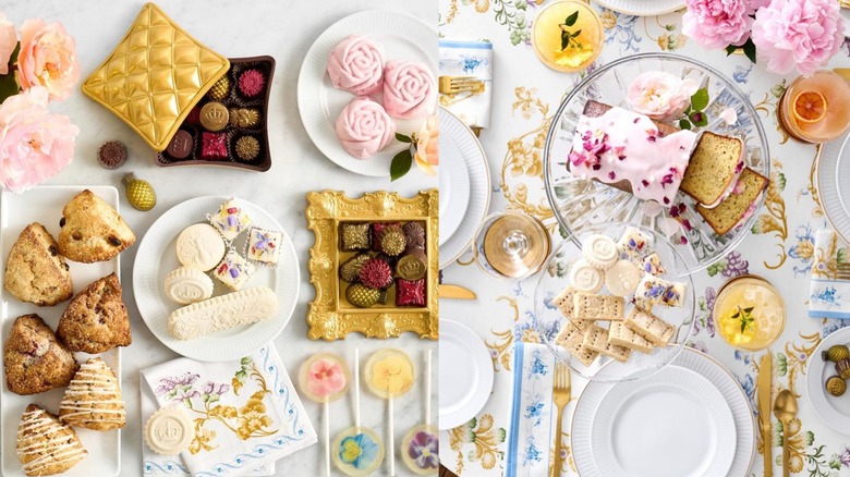 In the ready-to-eat department, foodies can find a variety pack of 10 individually wrapped British-style cream Mini Scones ($29.95, ships frozen), along with more premium-priced offerings like a set of 30 frosted petit fours ($59.95), teapot-shaped cake pops ($39.95), Lady Whistledown cameo cookies (29.95), single-serve gelatos shaped like elaborate rosebuds ($59.95), and more.