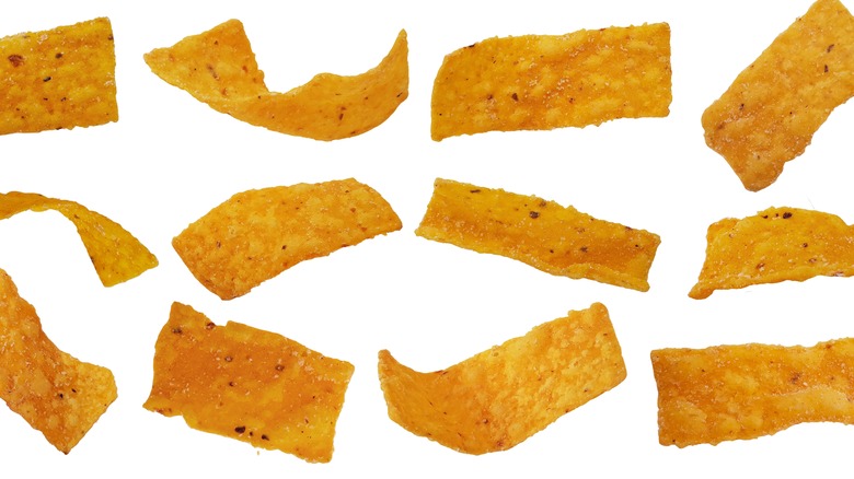 It wouldn't be tortilla soup without tortillas. The crispy fried tortilla strips that crown this soup are more than a garnish or an afterthought — their texture and taste make tortilla soup what it is. For the best strips, start with corn tortillas. The choice of white or yellow corn is negligible, but flour tortillas are too heavy for this soup and won't contribute the rich corn flavor expected. Store-bought corn tortilla chips are a shortcut in a pinch, but as with any shortcut, they don't deliver the full experience.