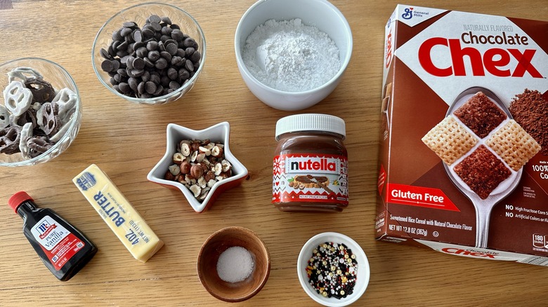 - 1 (12.8-ounce) box chocolate Chex cereal (about 8 cups)