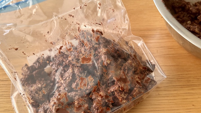 - Place half the cereal mixture into a large zip-top bag.