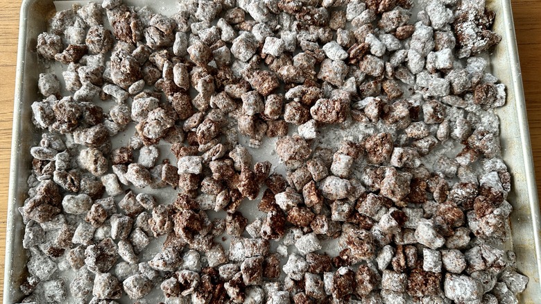 Ralston Purina (yes, the pet food company) was the inventor of Chex. The brand's Purina Dog Chow dog food was so named in reference to "military chow" — how service members in WWI described their food. Whether this chocolaty treat using Chex cereal was so named because of its connection to a dog food company, that it resembled kibble, or for the intensity with which it is often gobbled down, is up for debate. In 2002, General Mills profited off the popularity of the recipe using its Chex cereal by publishing a muddy buddies recipe on the cereal boxes, bringing the sweet snack's nationwide popularity to a new level.