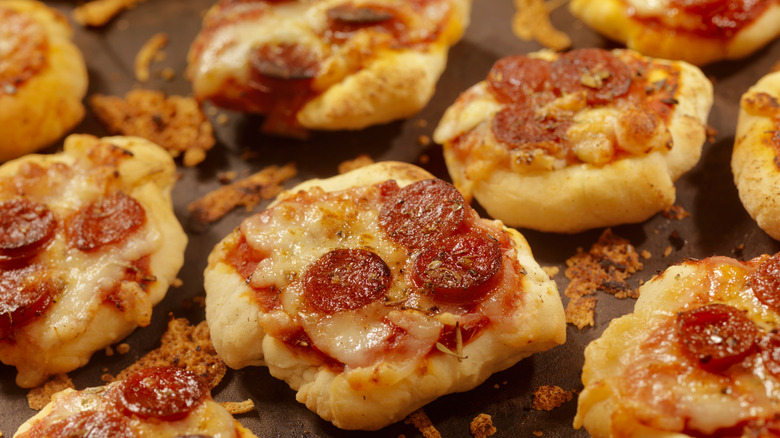 The other alternative to these individual pizza bites is to make a pizza casserole with your leftover biscuits. Toss your biscuit pieces with the sauce, cheese, and toppings and bake it in an oven-safe vessel until the cheese is molten. You can customize this dish with your favorite par-cooked veggies or meat; it's a great addition to a game-day spread or a family dinner.